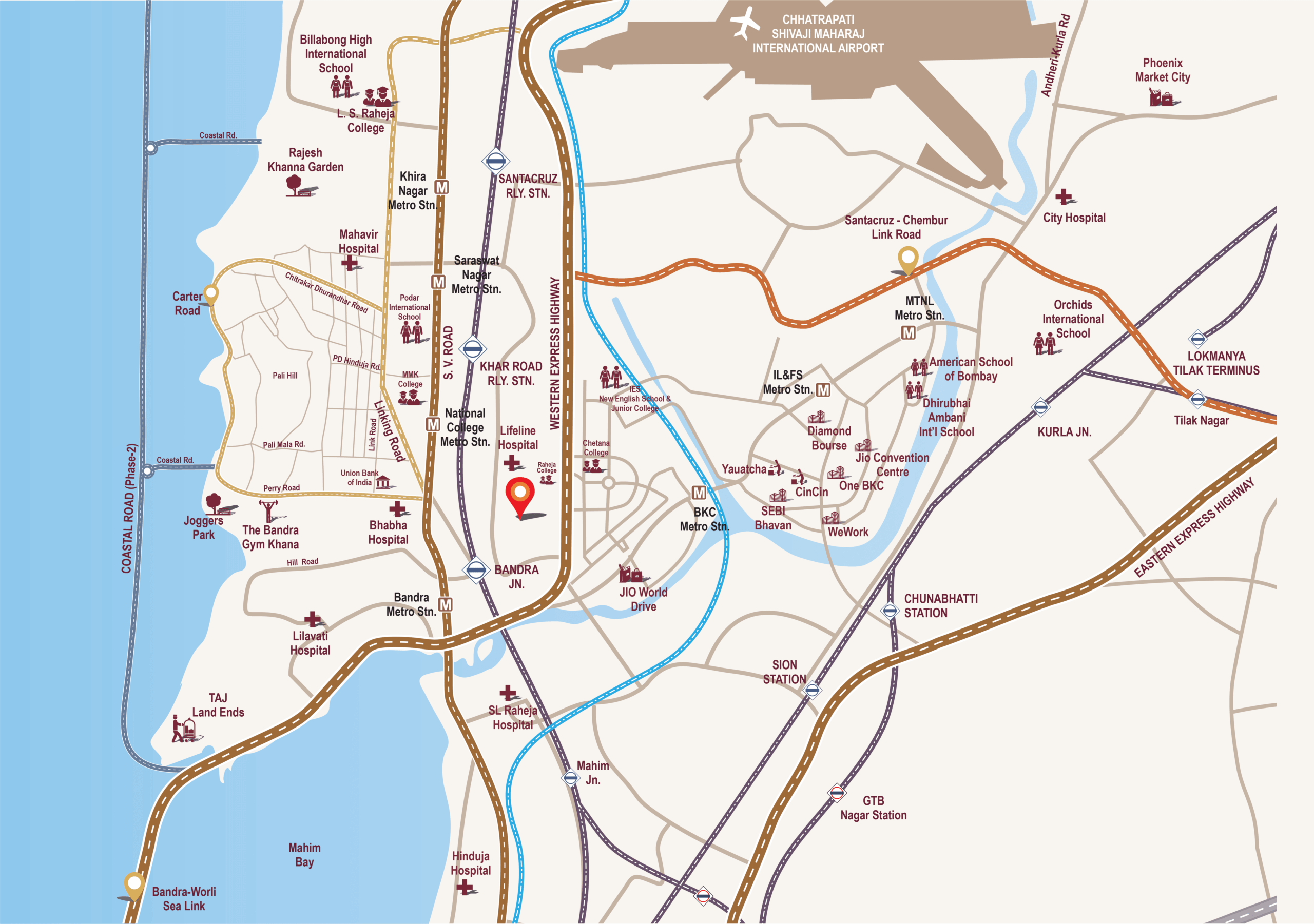 - Western Express Highway- Connects to: Airport, Andheri, Goregaon, Borivali, Worli, Lower Parel, South Mumbai